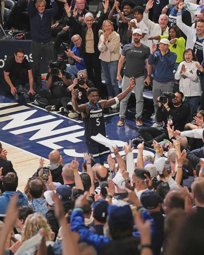 相比于掘金的穆雷、湖人的詹姆斯(或里夫斯)、火箭的申京,森林狼在愛德華茲被鎖死之后,進攻端的乏力或?qū)⒊蔀樗麄兗竞筚惵飞系淖畲舐闊?/p>